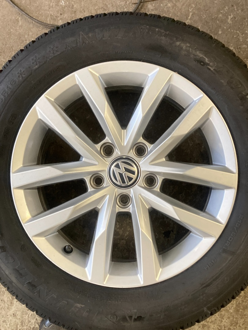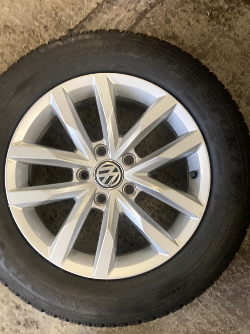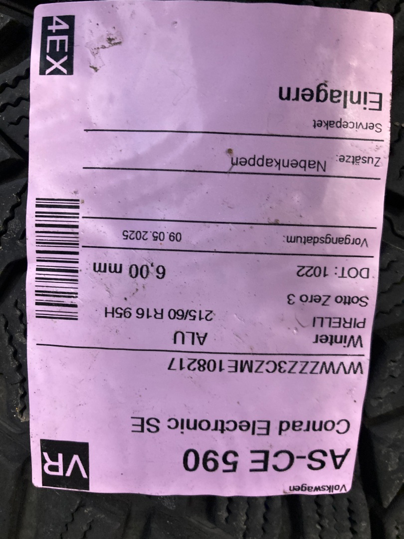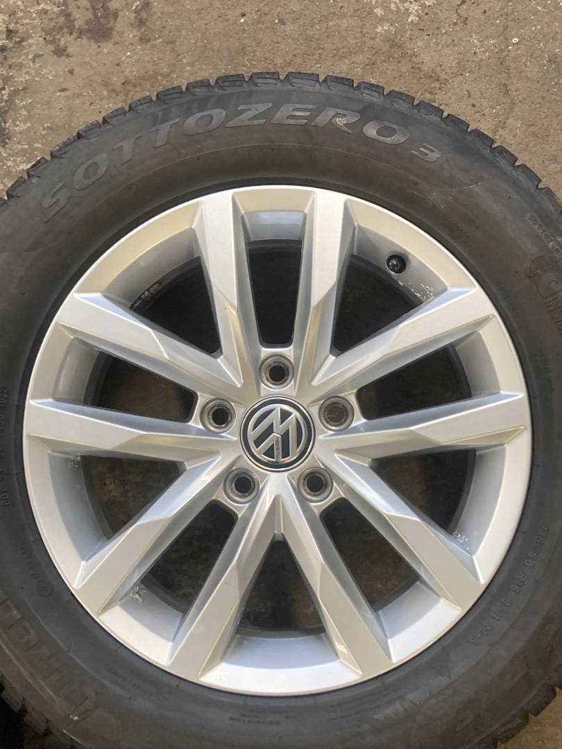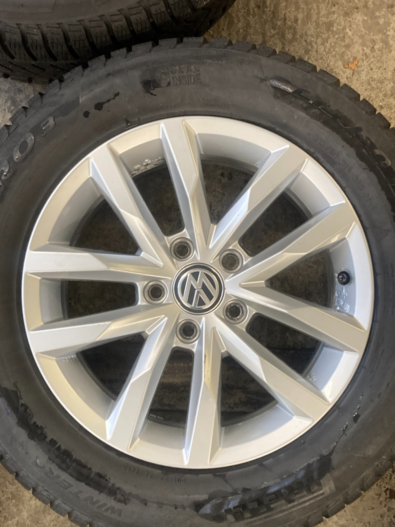 4x hliníkové disky ORIGINÁL VOLKSWAGEN (Caddy, pasat atd) rozteč 5x112mm Zimní pneu PIRELLI 215 60 R16 95H 6mm