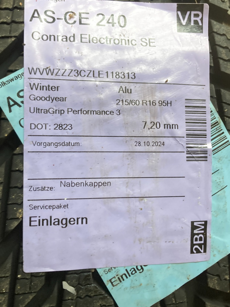 4x hliníkové disky ORIGINÁL VOLKSWAGEN (Caddy, pasat atd) rozteč 5x112mm Zimní pneu GOODYEAR ULTRA GRIP PRFORMANCE 3