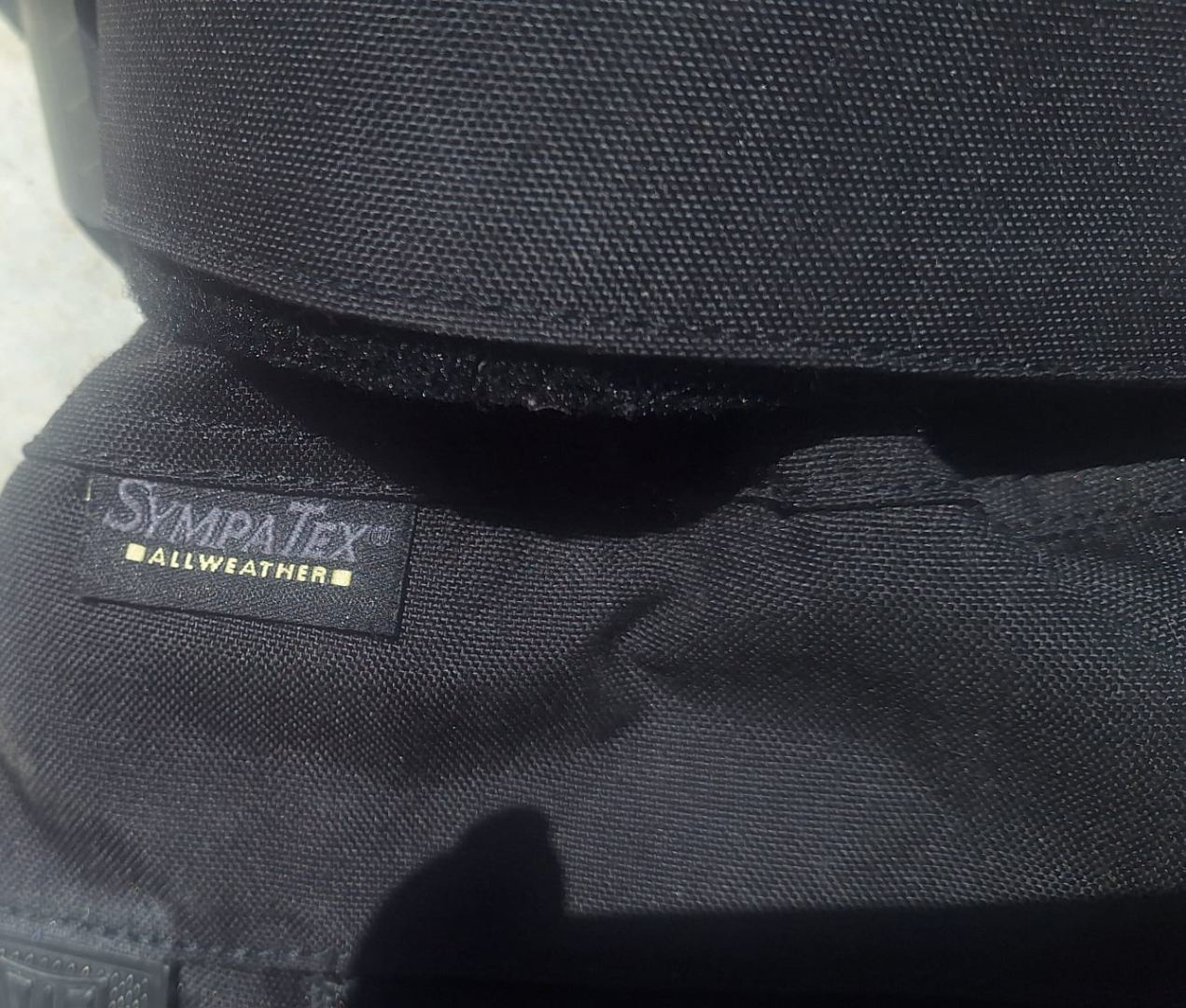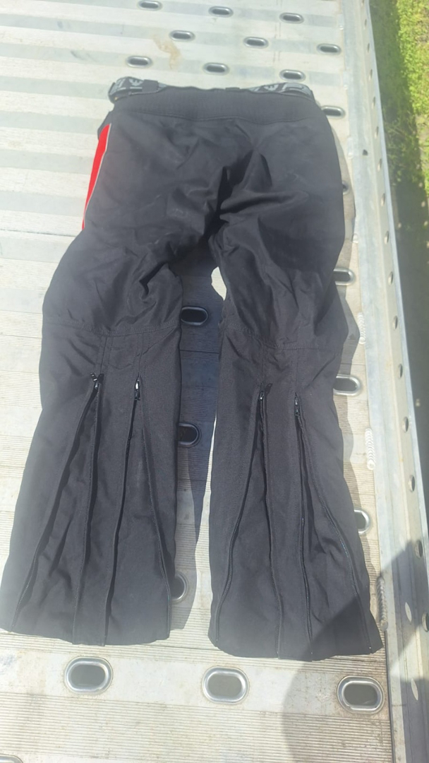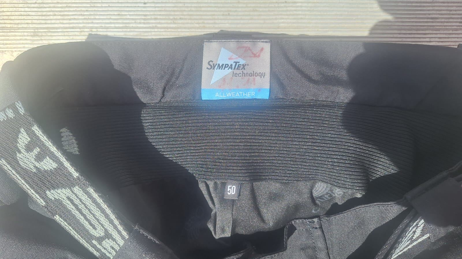 Kalhoty mají vyjímatelné plastové holenní chrániče, boky jsou vyztužené chráničemi. Vzadu na nohavicích zipy, kterými lze dole rozšířit nebo zúžit nohavice podle potřeby. Opaskek je nastavitelný. Pod pasem vzadu je zip, který je možné připnout k bundě a vytvořit kombinézu. Materiál opatřen membránou SYMPATEX WOODLAND. ALLWEATHER, WATERPROOF. Velmi kvalitní morkářské oblečení vel 50, je to spíše menší. Dá se ještě zmenšit páskem.