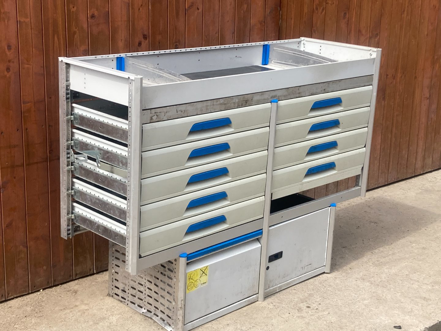 SORTIMO servisní dílenská vestavba do vozidla 150 x 100 x 50 cm. Vestavba zásuvková skříň pro dělníky, pro každou profesi. Regály na nářadí se 2 čadami šuplíků - pojízdná dílna pro řemeslníky. Vhodné do dodávek jako VOLKSWAGEN TRANSPORTER, CADDY nebo podobných typů vozidel.